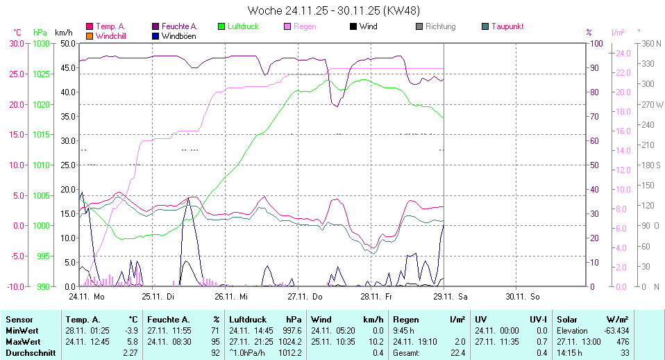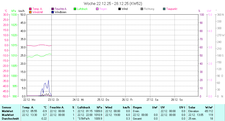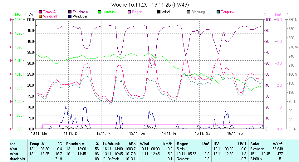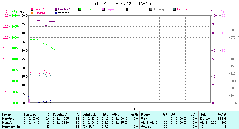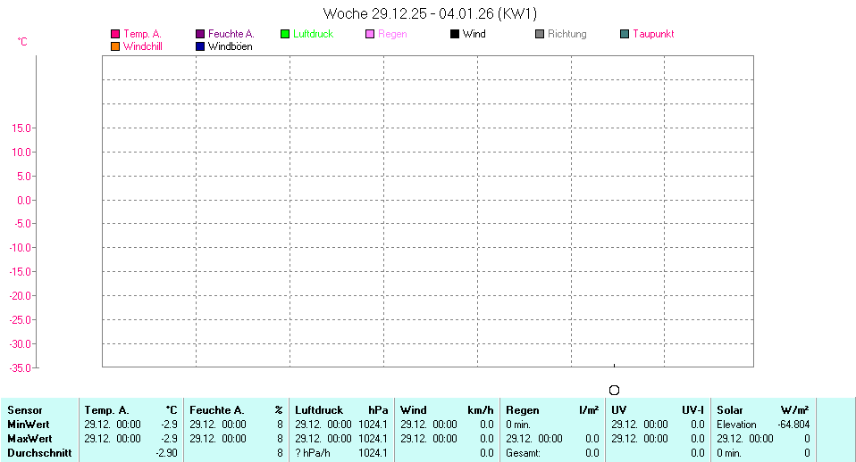 | Die dargestellten Werte repräsentieren die Daten des aktuellen Tages! Der Luftdruck ist auf Meereshöhe bezogen! |